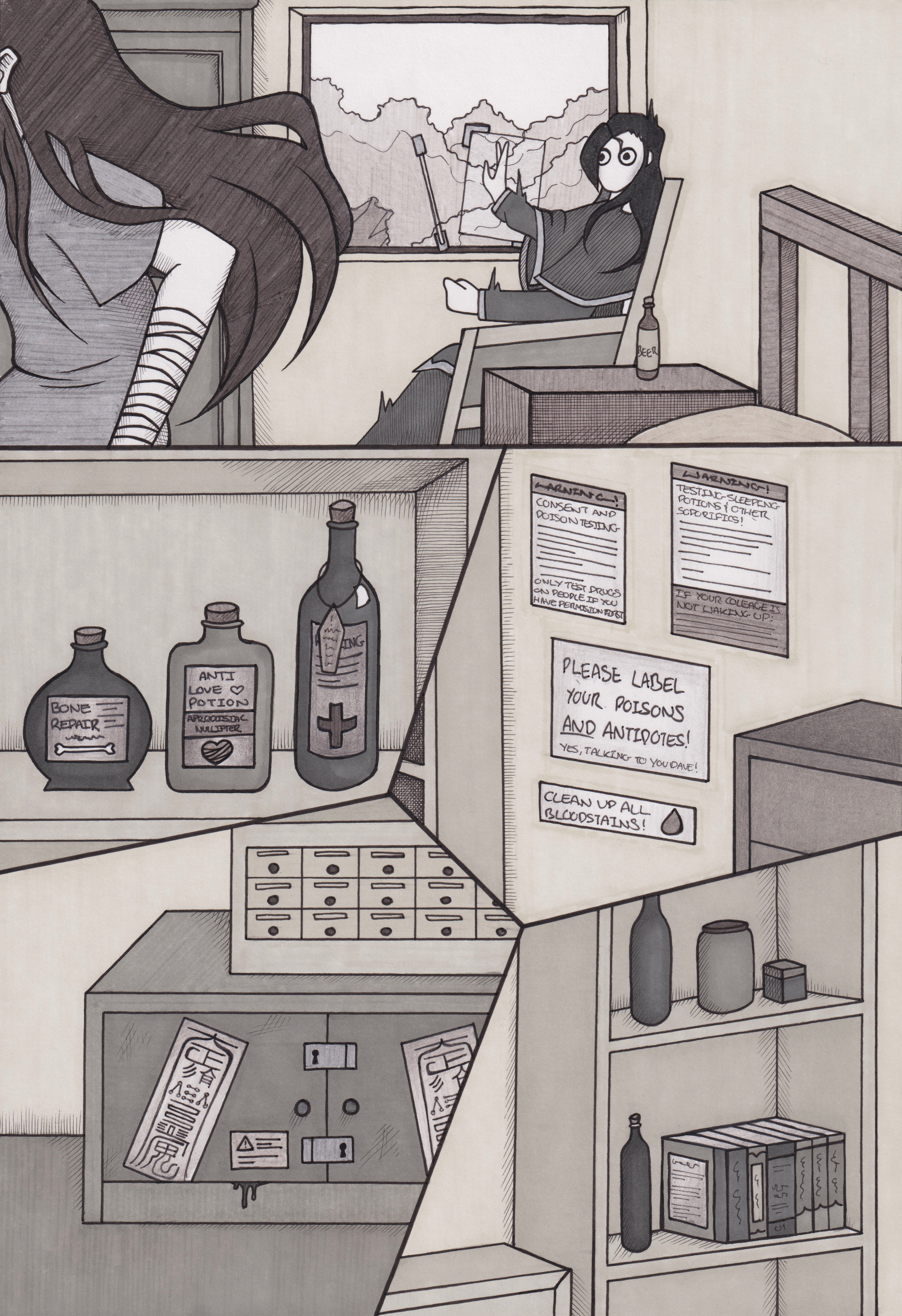 All of the pages were hand drawn and coloured using fineliners and pro-markers, incorporating cross hatching for extra depth and tone. I then scanned and cleaned to remove any artefacts like dust and marks, though I was careful not to changes the linework and fill, as I wanted it to retain its original look. The cover was created digitally in Procreate.