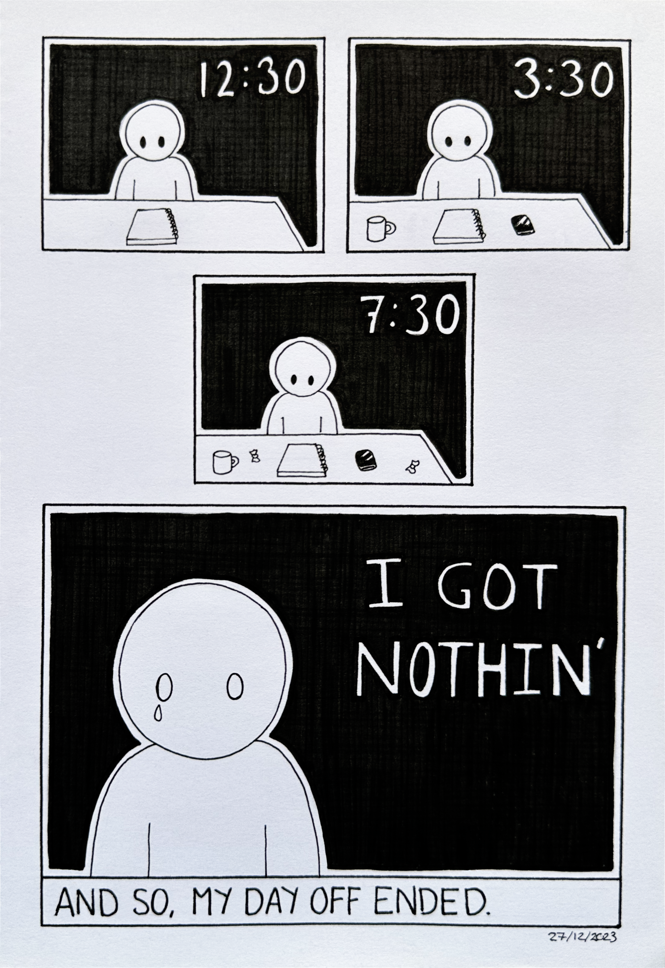 Collection of mini comics from my sketchbooks. Mostly hand drawn using fineliners and markers, and featuring day to day aspects of my family and student life. Recent work is at the top in descending order.
